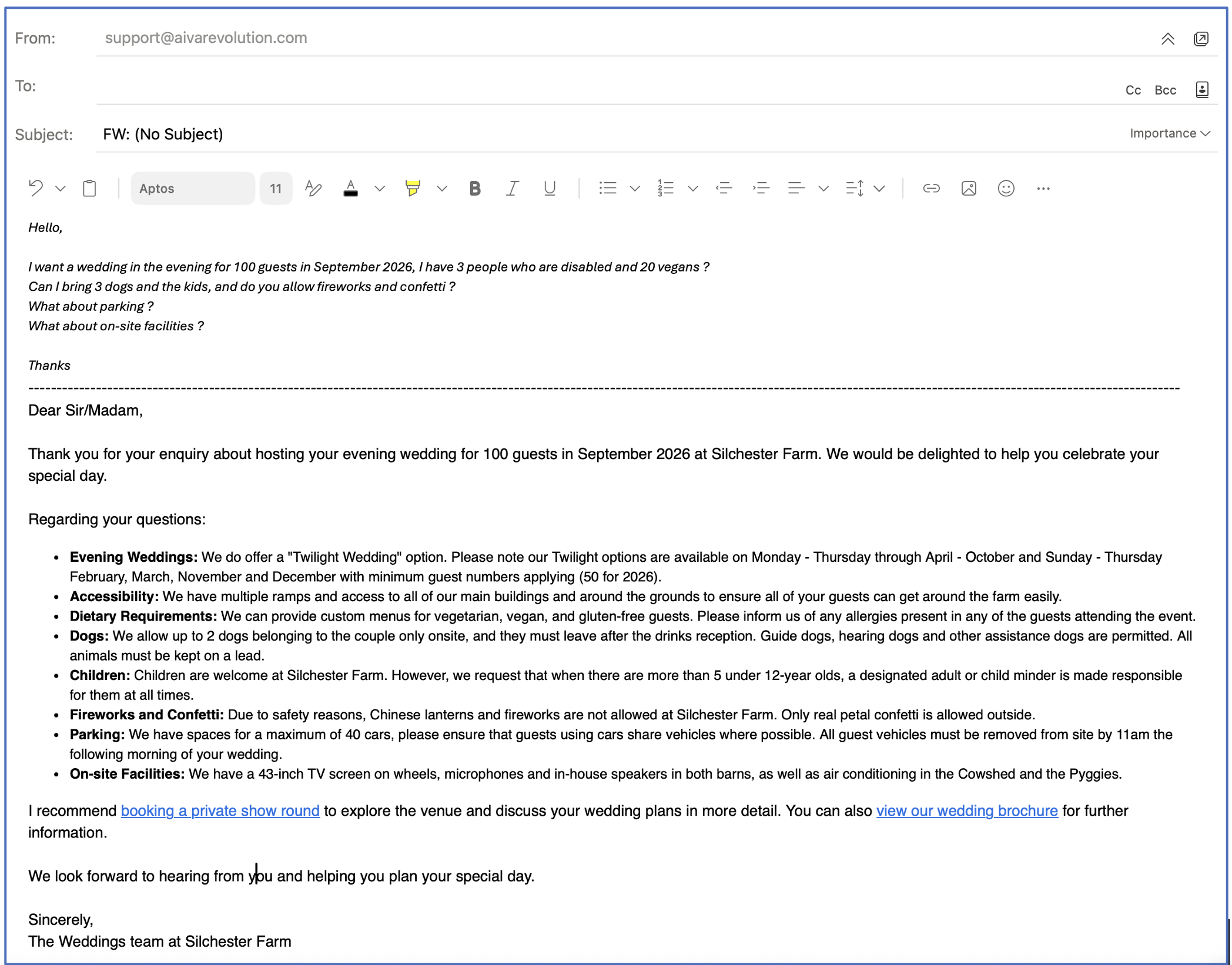 It doesn’t simply answer emails, it responds with relevance, adapts to enquiry type, and ensures every guest feels their message matters. Intelligent, consistent communication, delivered at speed.