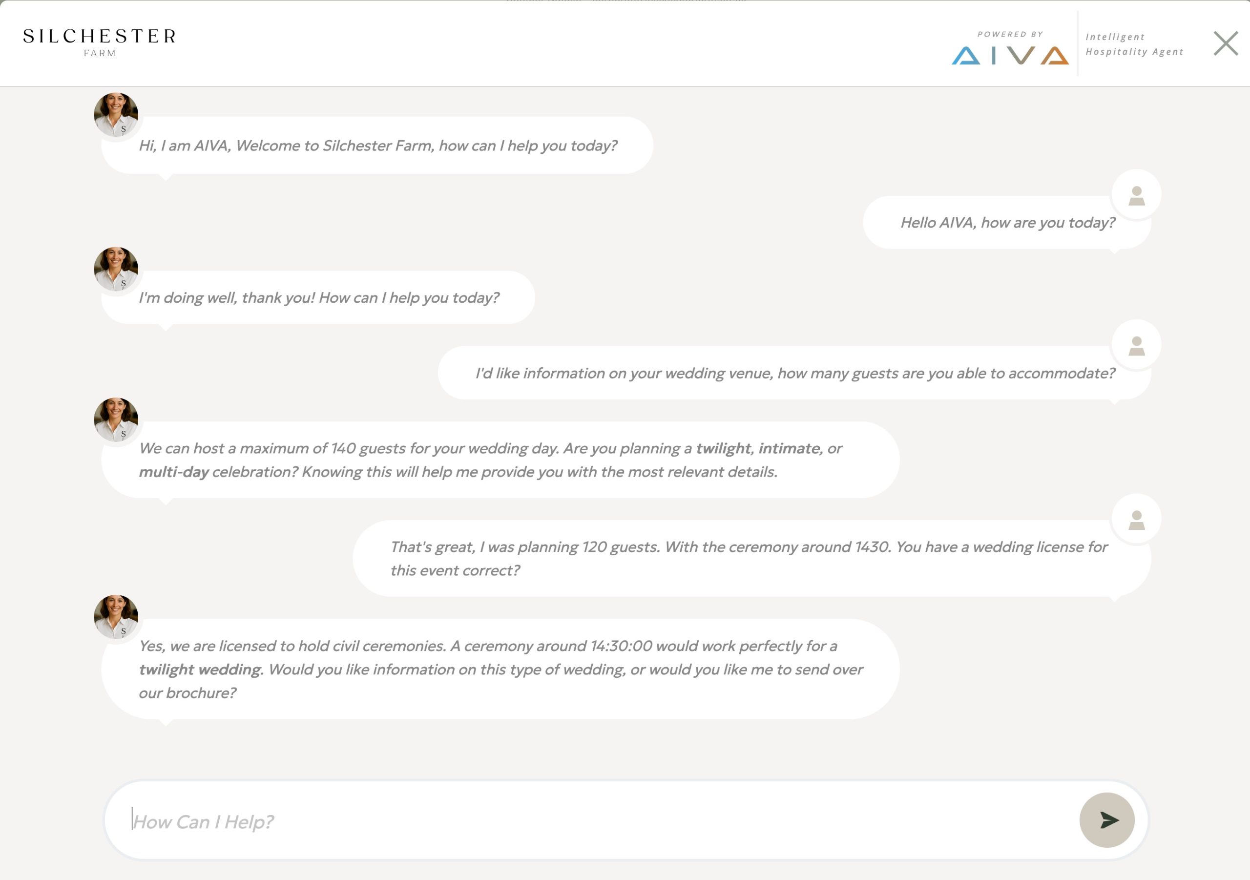 That means couples chatting with Silchester Farm get answers that feel like they’re from Silchester Farm, while a boutique hotel guest hears the warmth and professionalism they expect from that property. Generic platforms can’t replicate that nuance. Hospitality isn’t about being correct — it’s about being personal.